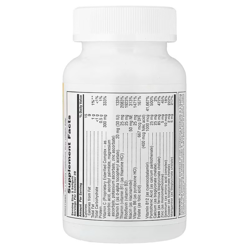 | Витамин C (запатентованный эстерифицированный комплекс в виде аскорбиновой кислоты, аскорбил пальмитата, аскорбата магния, аскорбата калия, аскорбата цинка) | 300 мг | 333% |