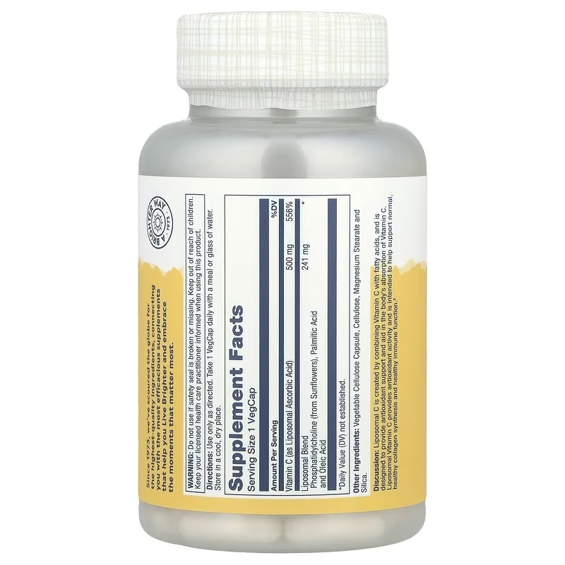 Описание. Липосомальный витамин C создаётся путём объединения витамина C с жирными кислотами и предназначен для обеспечения антиоксидантной поддержки и помощи в усвоении организмом витамина C. Липосомальный витамин C обеспечивает антиоксидантную активность и предназначен для поддержки нормального, здорового синтеза коллагена и здорового иммунитета.