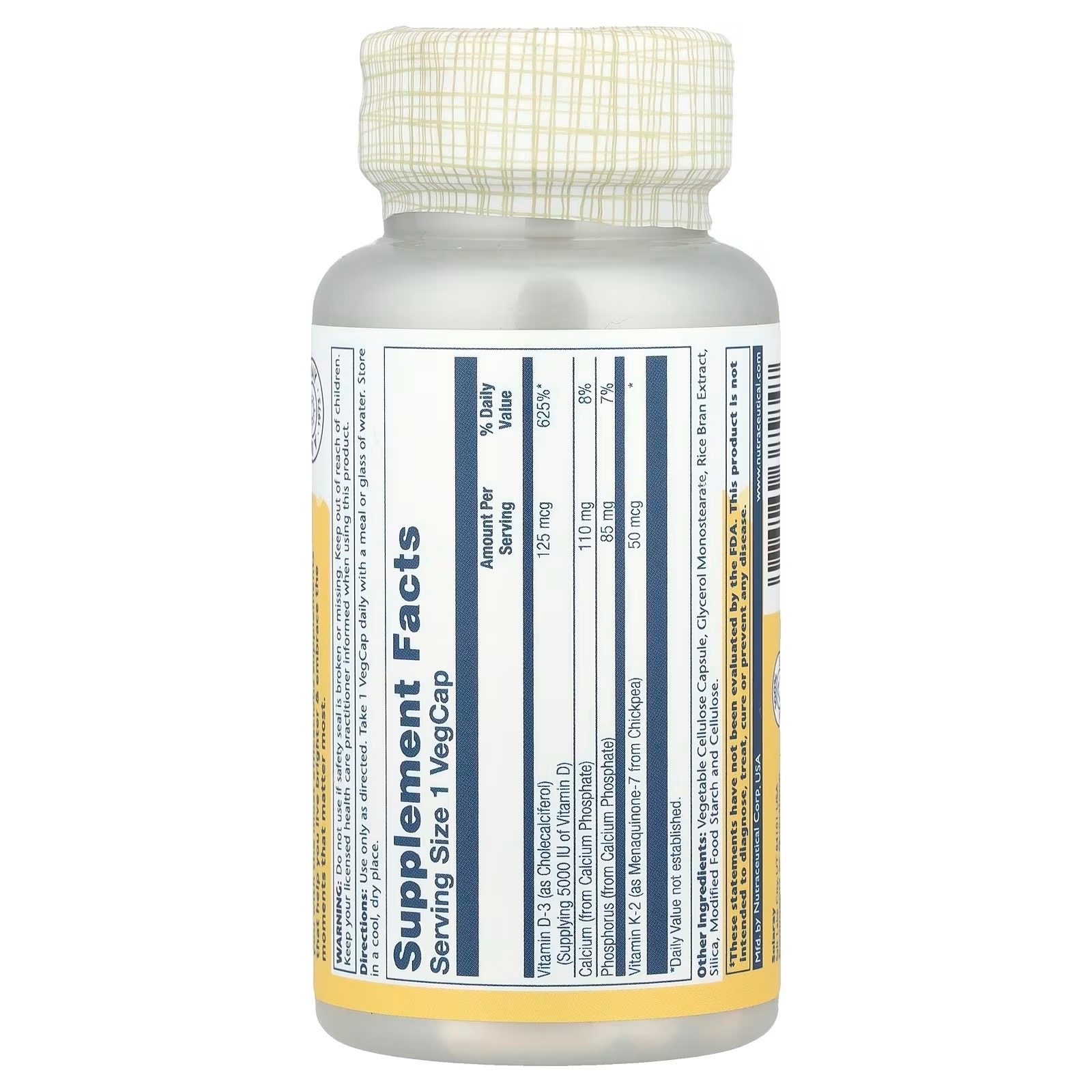 Количество в 1 порции% от суточной нормы Витамин D3 (в виде холекальциферола) (источник 5000 МЕ витамина D)125 мкг 625% Кальций (из фосфата кальция)110 мг 8% Фосфор (из фосфата кальция) 85 мг 7% Витамин K2 (в виде менахинона-7 из нута) 50 мкг** Суточная норма не определена